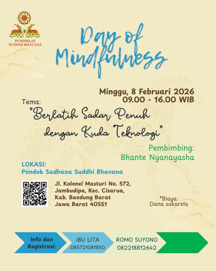 Pondok Sadhana Suddhi Bhavana mengundang Anda untuk mengikuti Day of Mindfulness yang diadakan pada: